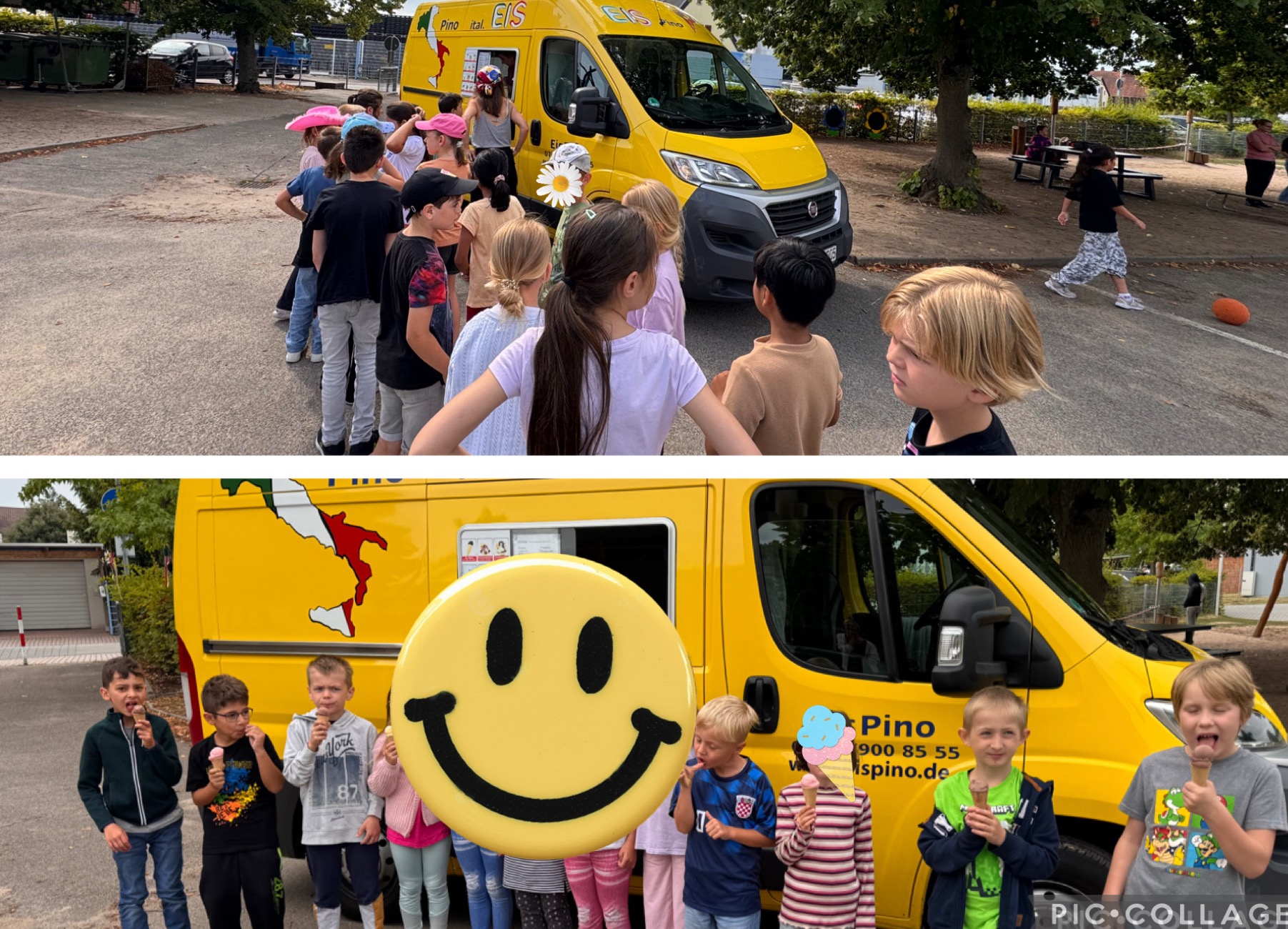 Der Förderkreis der Bolandenschule hatte zum Ende des Schuljahres eine besondere Überraschung für alle Schülerinnen und Schüler der Bolandenschule organisiert: Ein Eiswagen kam an die Schule und versorgte jedes Kind mit einer kühlen Leckerei. Damit bedankt sich der Förderkreis für die engagierte Teilnahme an der Aktion „Zu Fuß zur Schule“.