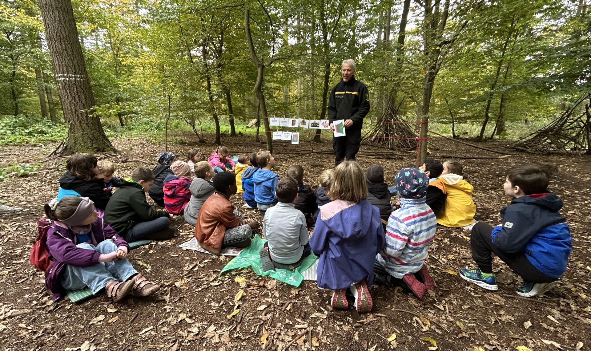 Am 16. Oktober 2025 unternahm die Klasse 2d einen Ausflug in den nahegelegenen Wald. Begleitet wurden die Kinder vom Förster Herrn Glückstein, der ihnen auf anschauliche und spielerische Weise die heimischen Baumarten näherbrachte.